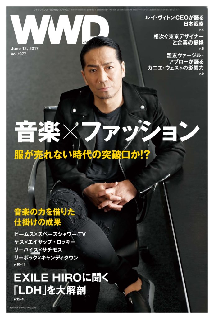“音楽の力は服が売れない時代の突破口になるか?”をテーマに、それを仕掛けている裏方に迫った特集です。この年、新体制を発表したLDHは、NIGO®️さんやVERBALさん、スタイリストの野口強さんといったファッション業界にもなじみのある方々を迎え入れました。LDHが目指すブランディングについて、トップのEXILE HIROさんにインタビューしています。また、DJとしても活躍するヴァージル・アブローに聞いた音楽とファッションの関係性。「リーバイス」や「リーボック」「ビームス」「ゲス」などが音楽と取り組んだ事例と、そこから生まれた成果も紹介しています。